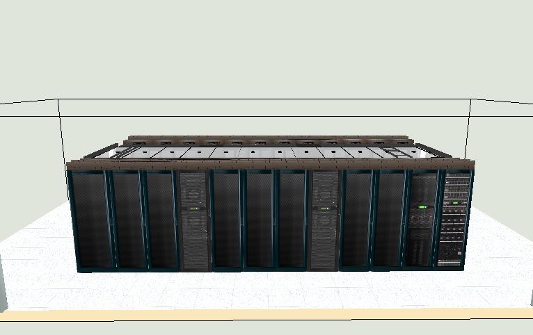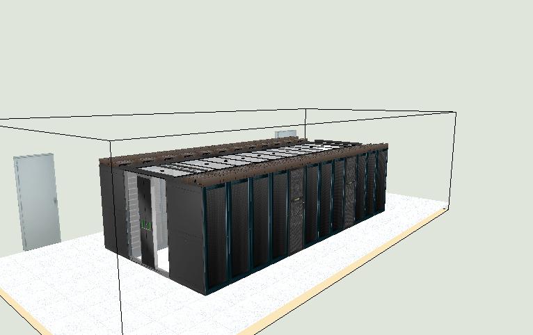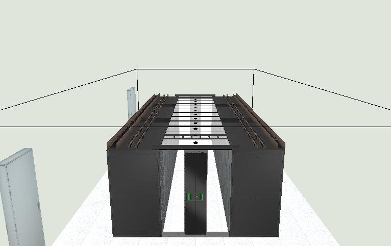 本数据中心2台PX500KVA UPS,12台ACRD602列间空调,42台高密度机柜形成2个英飞微模块热通道机房